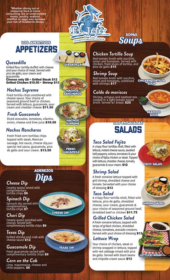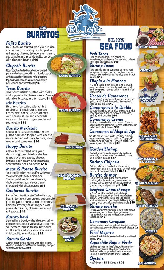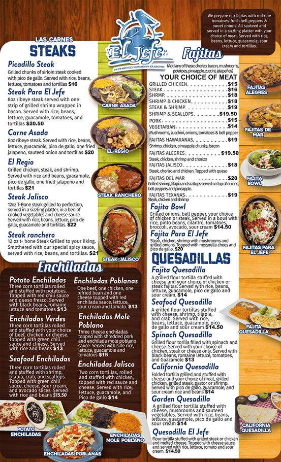 El Jefe Authentic Mexican Cuisine Menu